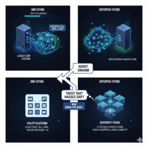 - SMEs: Might move toward ultra-low-cost, “good enough” platforms (like a hyper-integrated Zoho or Odoo on steroids) because they lack the bandwidth to manage even an “AI-built” custom stack.
